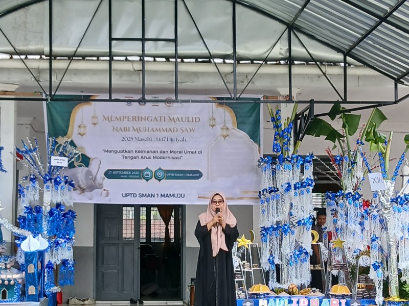 147UPTD SMAN 1 Mamuju menggelar peringatan Maulid Nabi Muhammad SAW 1447 Hijriah/2025 Masehi pada Sabtu, 27 September 2025. Acara yang berlangsung meriah dan penuh kekhidmatan ini dihadiri oleh seluruh warga sekolah bersama para tamu undangan, serta menjadi momen kebersamaan yang